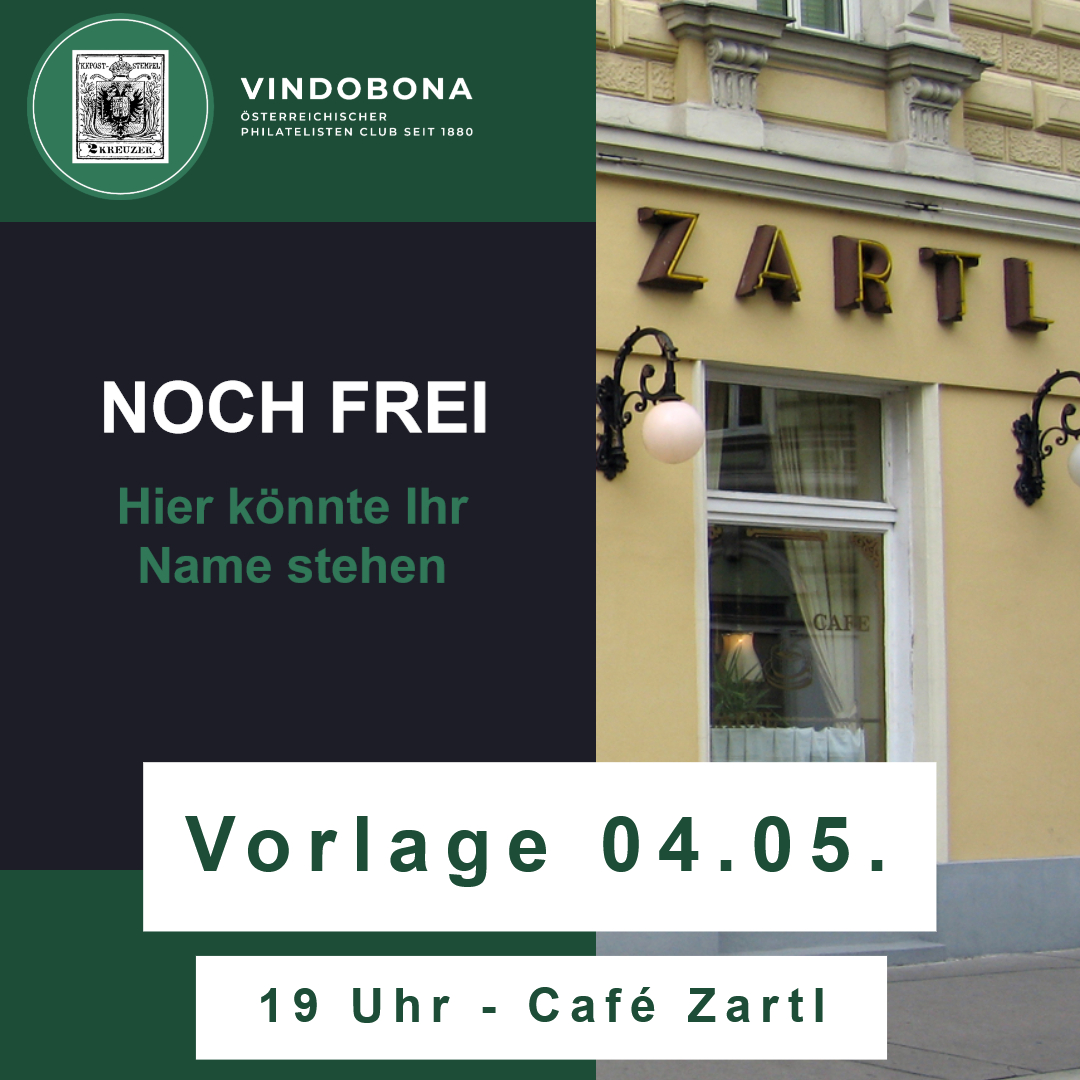 noch frei hier könnte Ihr Name stehen + Add to Google Calendar + iCal export Date 04 May 2026 Time 19:00 Location Café Zartl Rasumofskygasse 7, 1030 Wien Category Kleine Vorlagen Organizer Vindobona Österreichischer Philatelisten Club Share this event