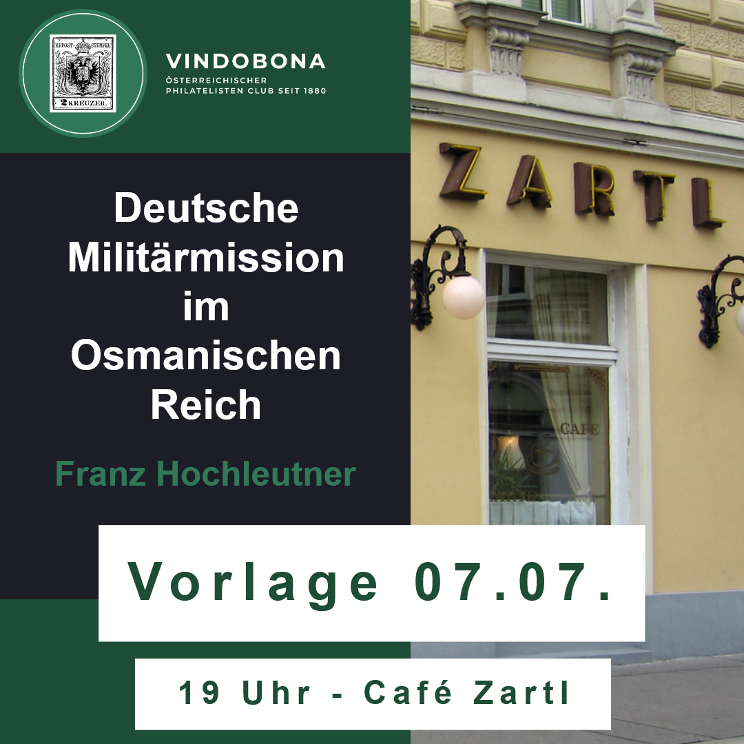 Deutsche Militärmission im Osmanischen Reich Franz Hochleutner + Add to Google Calendar + iCal export Date 07 Jul 2025 Time 19:00 Location Café Zartl Rasumofskygasse 7, 1030 Wien Category Kleine Vorlagen Organizer Vindobona Österreichischer Philatelisten Club Share this event