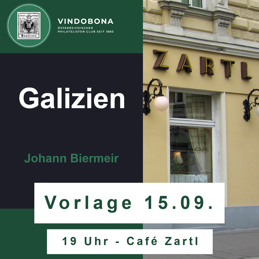 Galizien Johann Biermeir + Add to Google Calendar + iCal export Date 15 Sep 2025 Time 19:00 Location Café Zartl Rasumofskygasse 7, 1030 Wien Category Kleine Vorlagen Organizer Vindobona Österreichischer Philatelisten Club Share this event